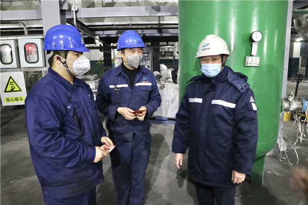 總經理陳子清、技術總監申勇在除夕夜攜安環部部長蔡巖、綜合辦公室主任李微親臨各部門、各車間,向當日辛勤堅守在崗位上的當值班人員表示感謝并致以新春的問候和祝福。